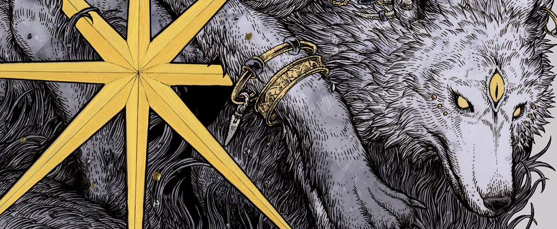 Matte Film. Acrylic Gouache, Dip pen, ink and Foil.