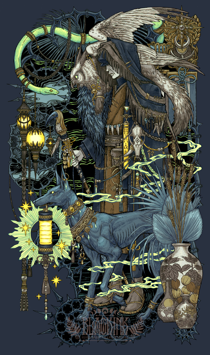 Acrylic Gouache, Acrylic Ink, Ink, Foil.